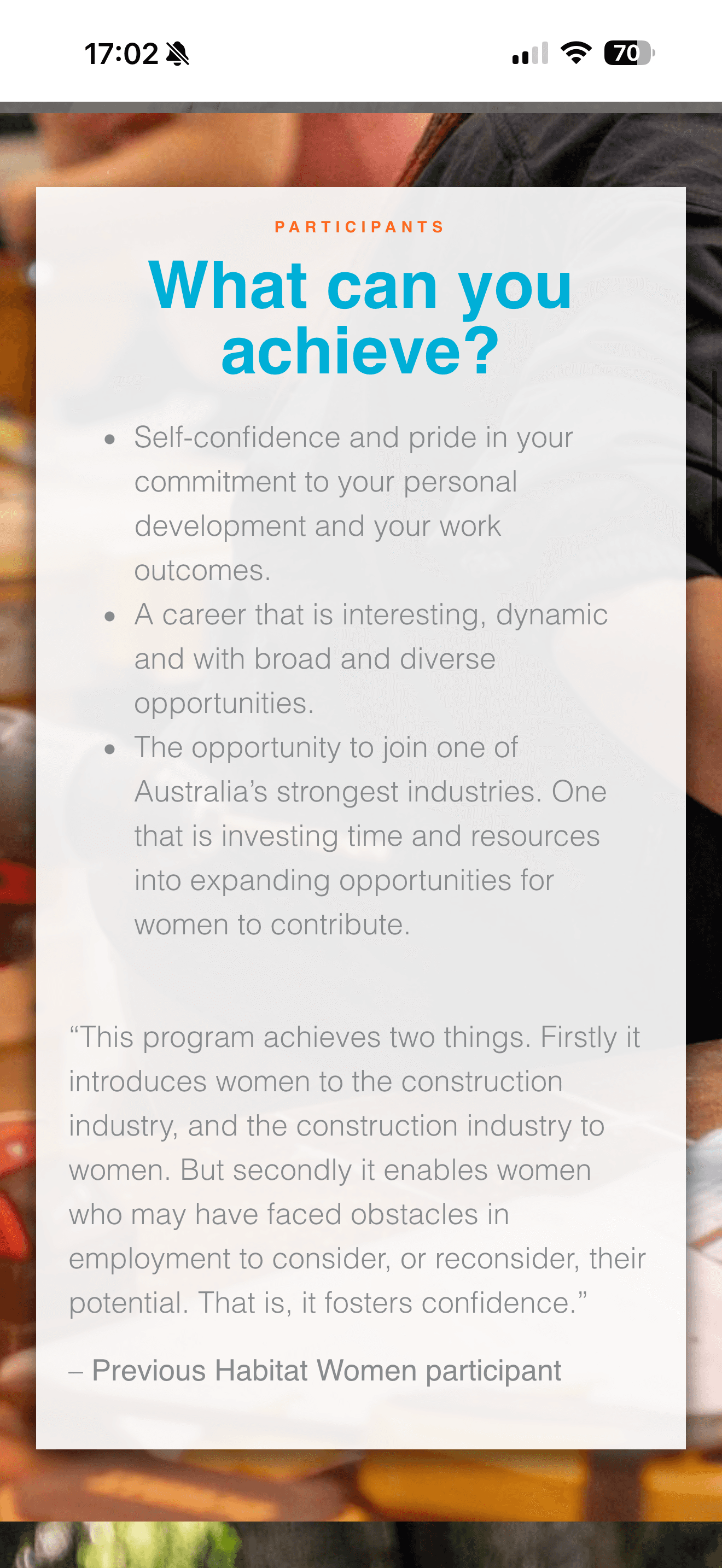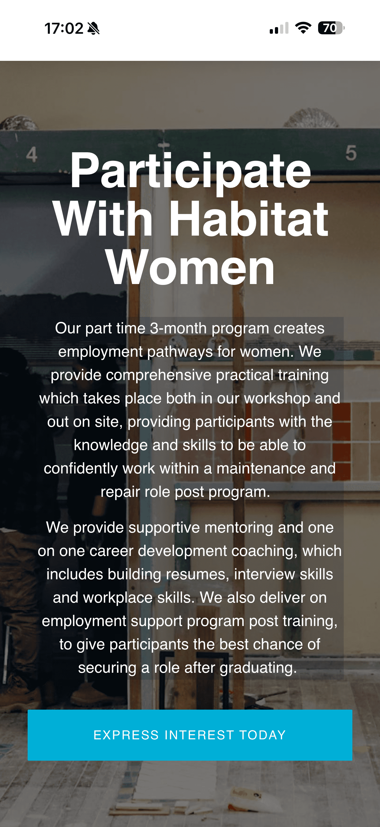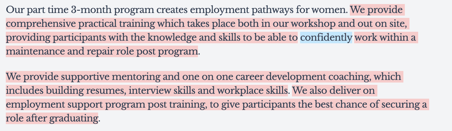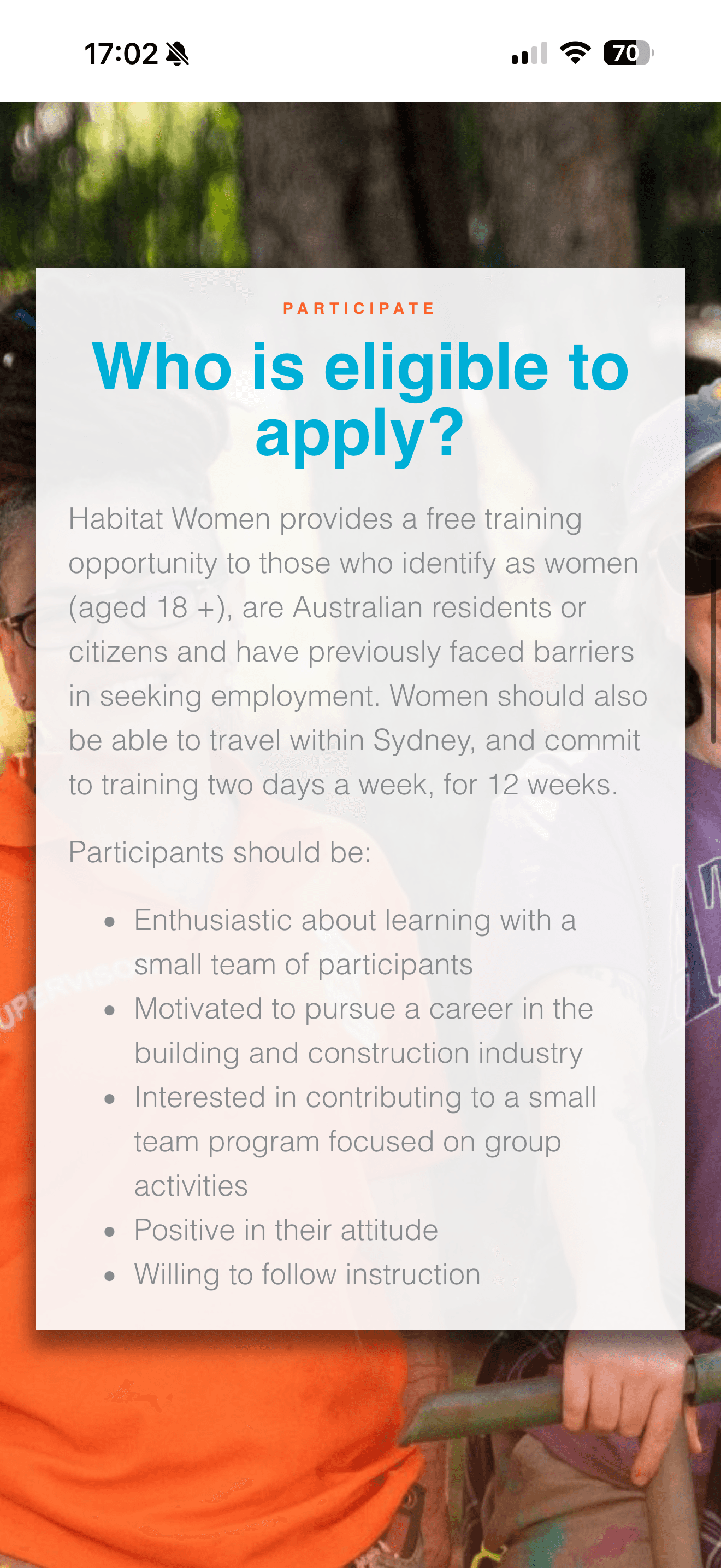 Habitat Women's main target audience is mobile-based, busy population with a range of education levels. Text-heavy pages full of jargon make it hard to skim through.